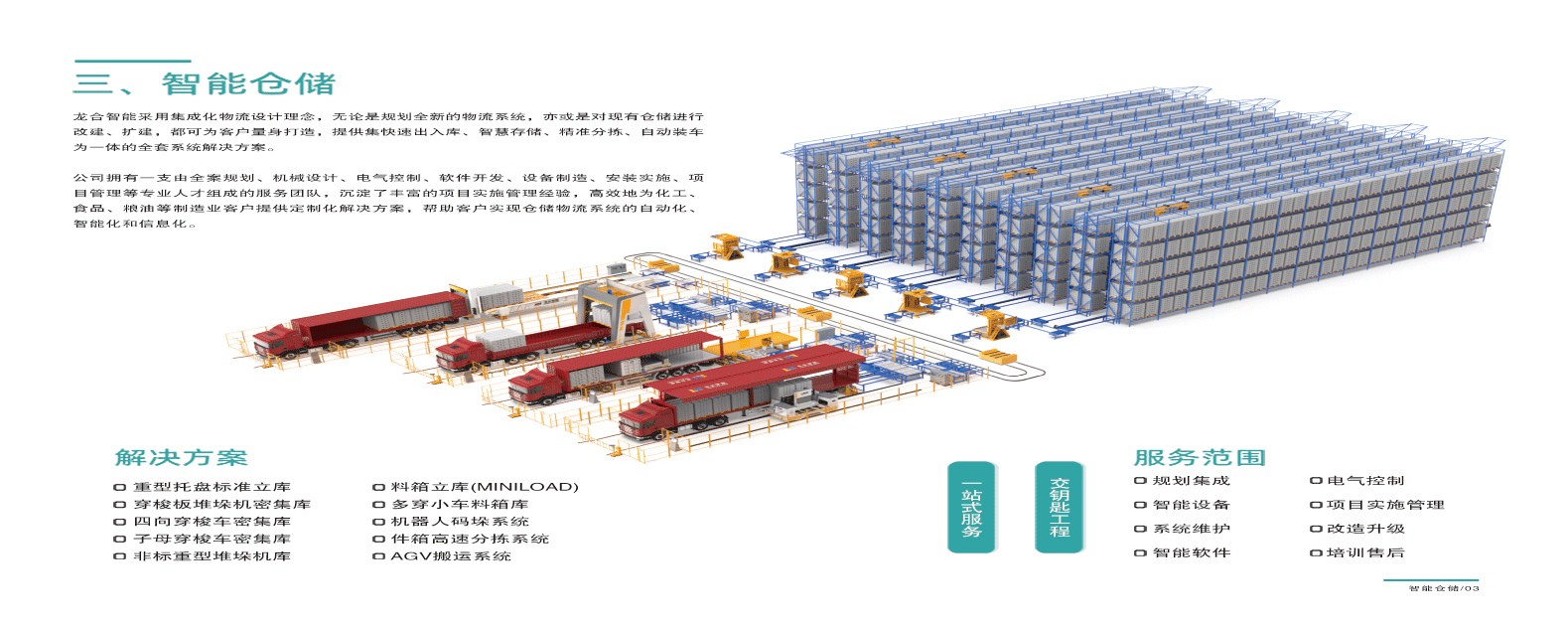 龍合智能裝備制造有限公司于2014年5月成立,位于閩西革命老區福建省龍巖高新區(經開區),系一家集自主研發、高端制造、營銷服務為一體的現代化智能制造企業。公司主營業務包括智能物流搬運、裝卸設備及其集成應用系統整體解決方案、智能倉儲軟硬件綜合集成系統及屬具產品等。